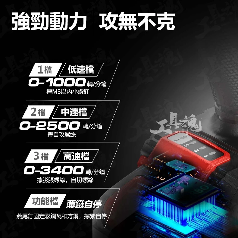 ◇三檔轉速+1檔薄鐵自停 最高3400轉/分