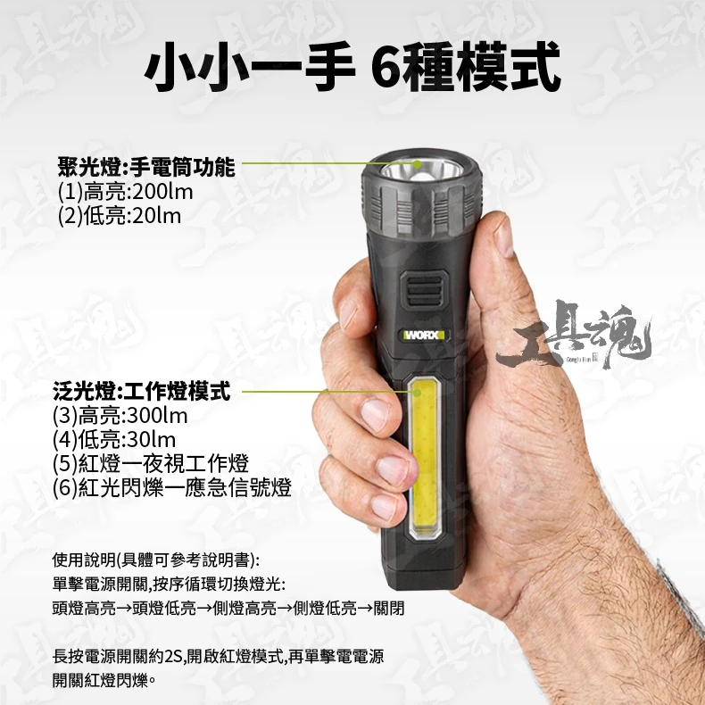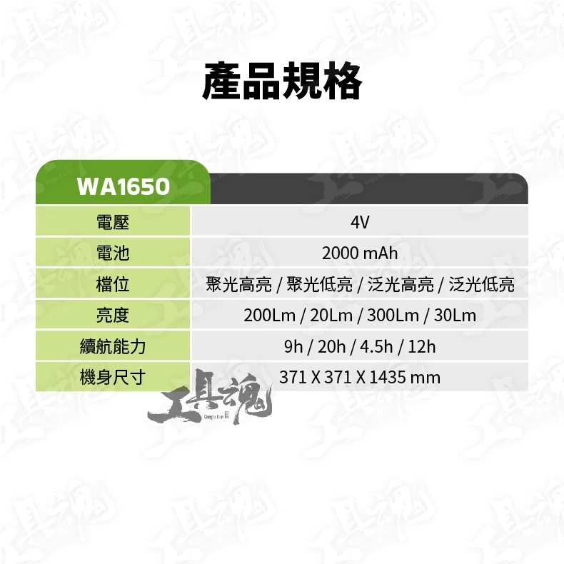 威克士- WA1650 LED 強光手電筒 4V LED燈 手電筒 工作燈 泛光燈 wa1650 w
