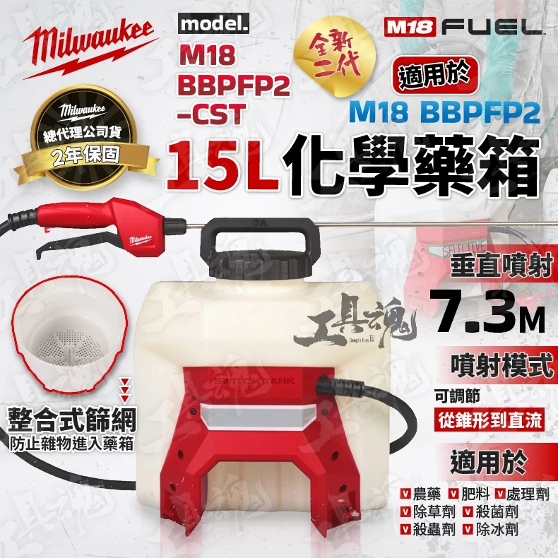 ●可互換的儲槽設計將幫浦、軟管和棒隔離開來,將穿戴式組件與 M18™ SWITCH TANK™ 供電底座分開