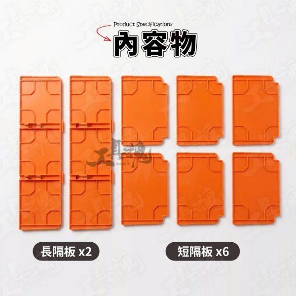 長隔板: 2 片(具備多個插槽,可與短隔板交錯組合)