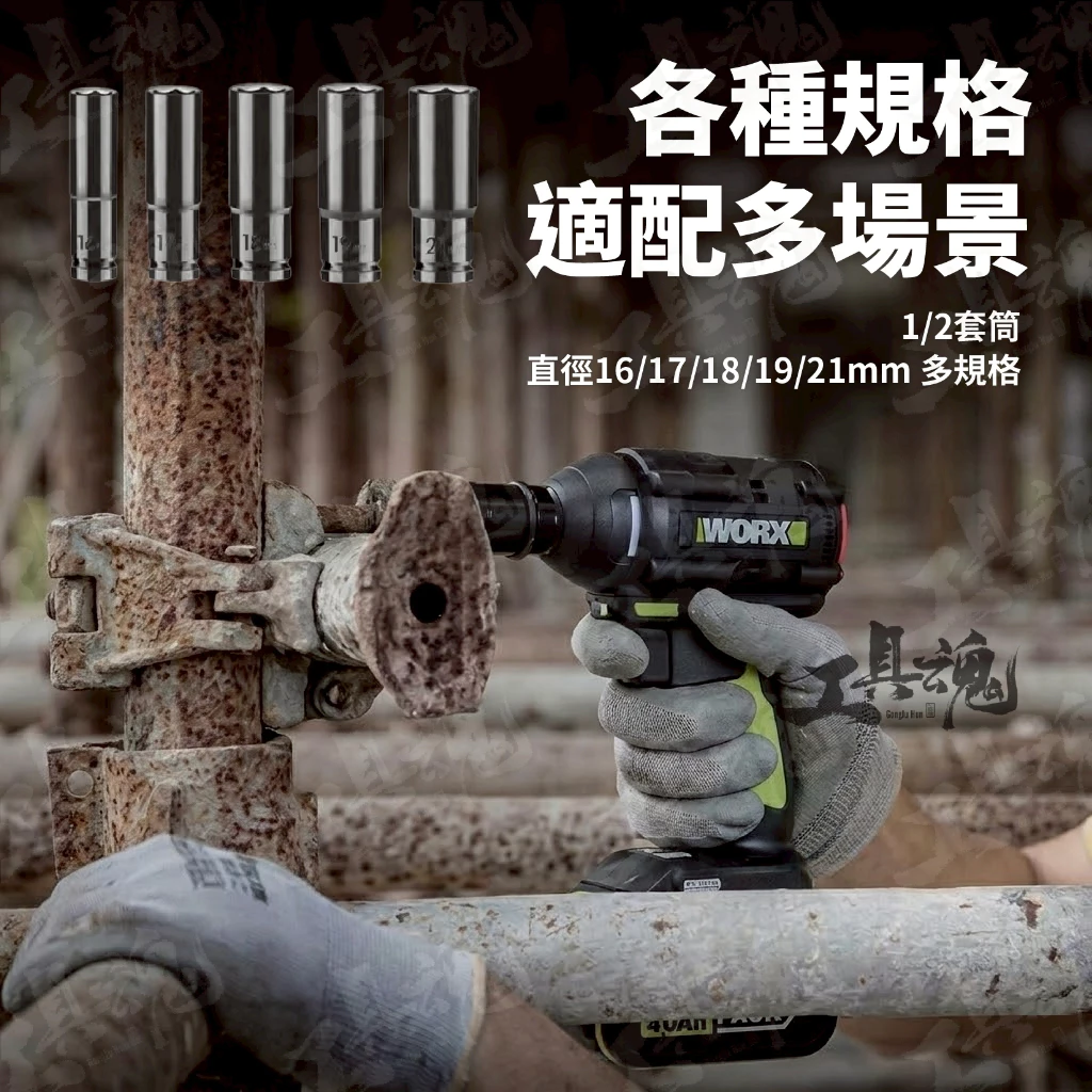 1/2 套筒 (5種尺寸) 16 / 17 / 18 / 19 / 21mm 各一支