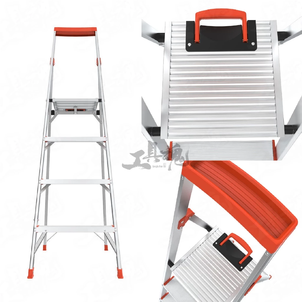 ☑️多功能頂蓋設計: 梯子頂端設有便利的收納槽,可放置螺絲起子、零件或其他手持工具,工作時不必反覆爬下梯子拿取。