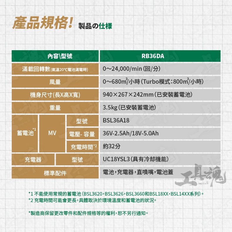 工作量增加-配備了高效的無刷馬達和小巧輕便的高輸出MV電池,工作量增加了。
