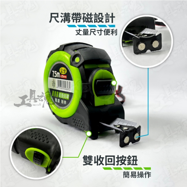 7.5Mx25mm 自動剎車捲尺(公分尺) 附磁鐵