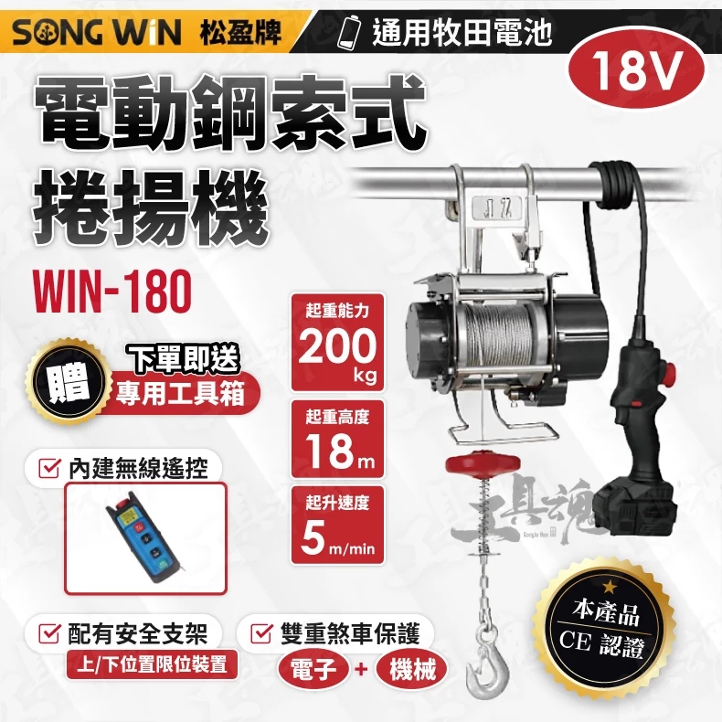 松盈牌- 鋼索 WIN-180 18V 小金剛 電動吊車 電動絞盤 通用牧田電池 鋼索小吊車 鋼索吊