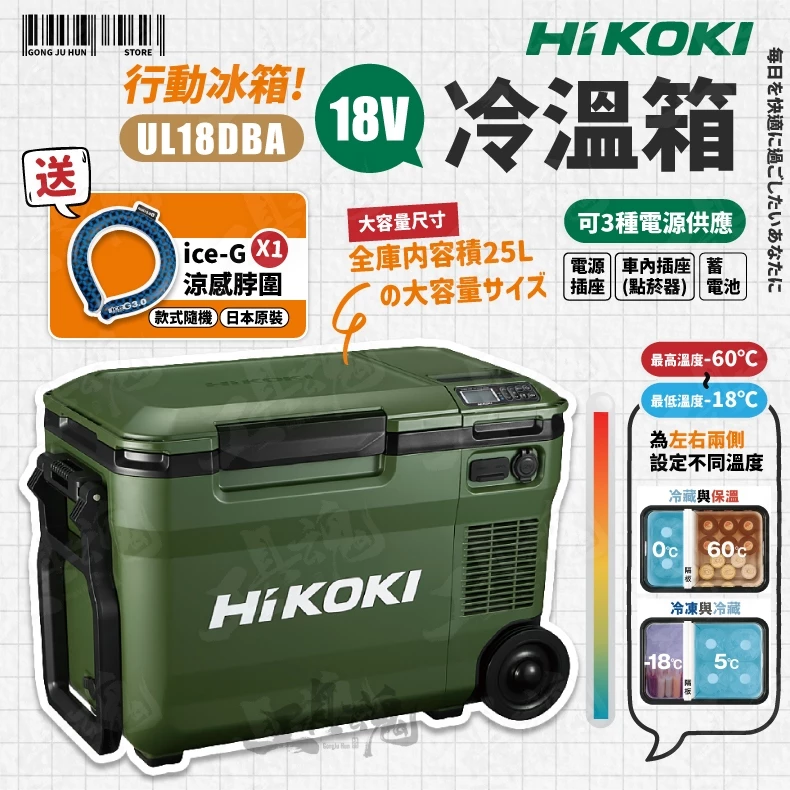 查看更多HiKOKI- 冰箱 UL18DBA 18V 行動冷溫箱 25L 保冷箱 保溫箱 冷藏 冷凍 保溫