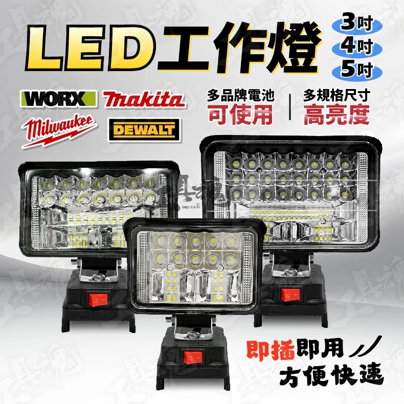 3吋 4吋 5吋 LED工作燈 適用 威克士大腳板 牧田 得偉 美沃奇 高光 工作燈 照明燈