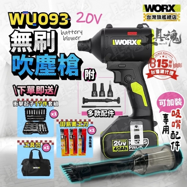 威克士-WU093 無刷渦輪吹塵槍 可加裝吸嘴配件 wu093 吹風 鼓風機 吹塵槍 worx 公司