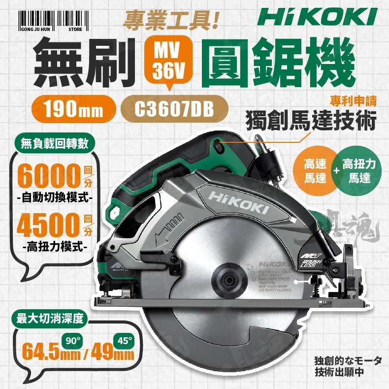 HIKOKI- 無刷圓鋸機 C3607DB 36V MV 7吋 190mm 充電式 圓鋸機 獨家專利