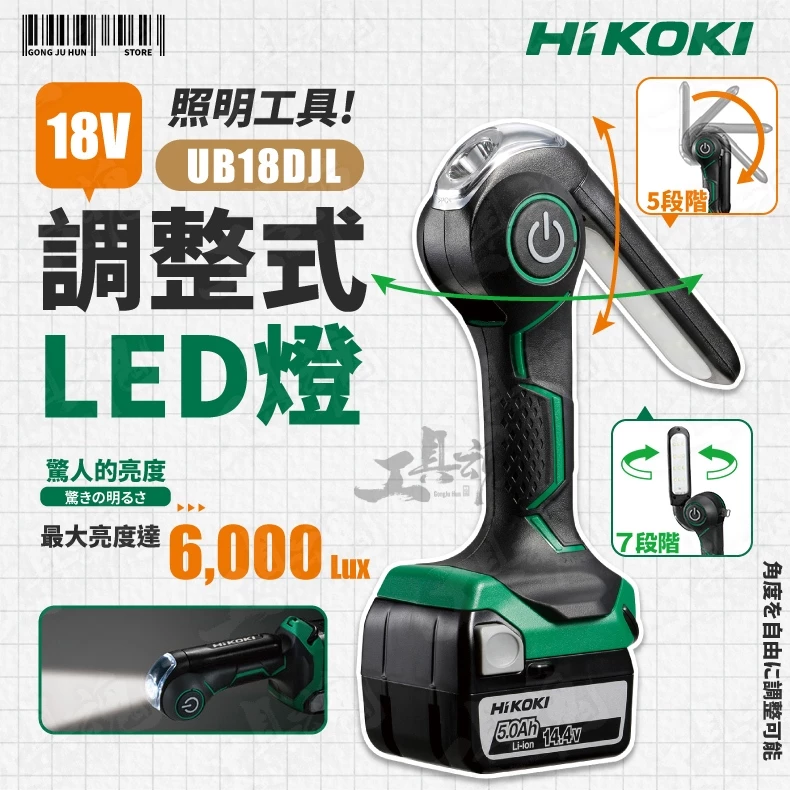 HIKOKI- UB18DJL 18V 摺疊工作燈 照明燈 LED工作燈 探照燈 工作燈 手電筒 日