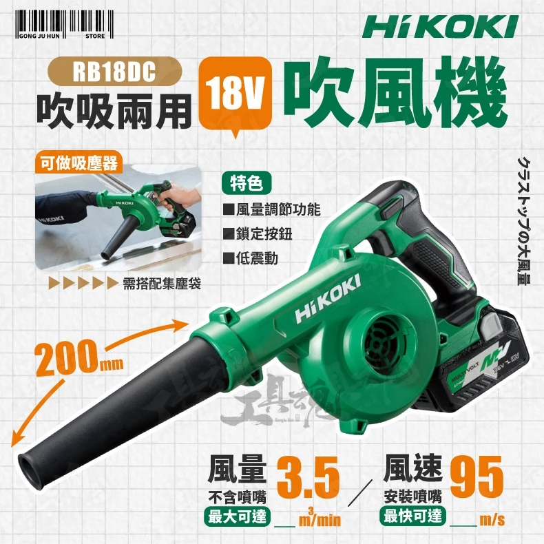 HIKOKI- 充電式 RB18DC 18V 單主機 吹吸兩用 低震動 吹塵槍 除塵 清潔工具 吹風