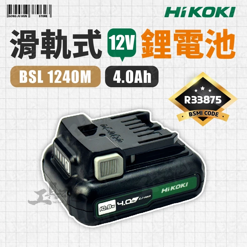 HIKOKI- 滑軌式鋰電池 BSL1240M 12V 4.0ah 鋰電池 日立