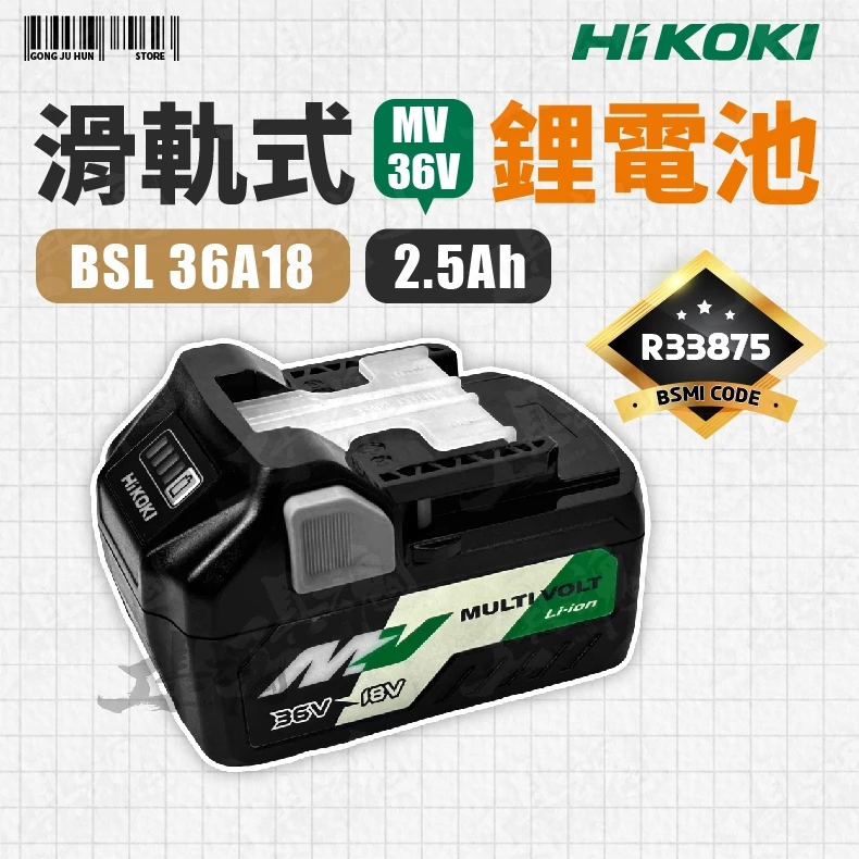 HIKOKI- 新款 36V 2.5Ah 鋰電池 BSL36A18X 滑軌式電池 日立 BSL36A