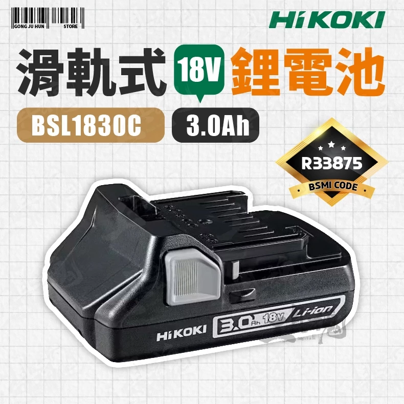 HIKOKI- 新款 BSL1830C 18V 3.0Ah 滑軌鋰電池 日立 原廠公司貨