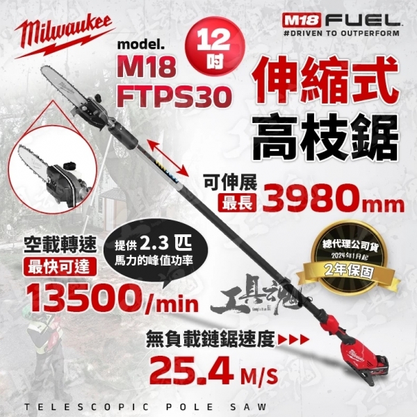 美沃奇 M18 FTPS30 12吋 伸縮高枝鋸 伸縮鋸 18V 高空鏈鋸 FTPS30 米沃奇 公