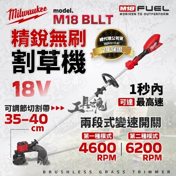 美沃奇-M18 BLLT 精銳無刷割草機 18V 電動割草機 割草機 專業割草 BLLT 米沃奇 公