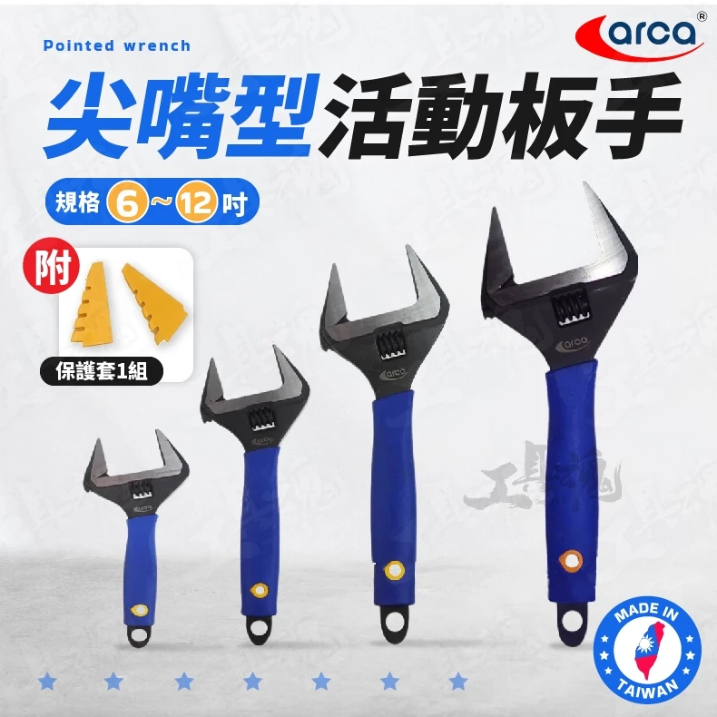 亞克- 尖嘴型活動板手 6 8 10 12吋台灣製 大開口活動板手 尖嘴型活動板手 ARCA 薄型尖