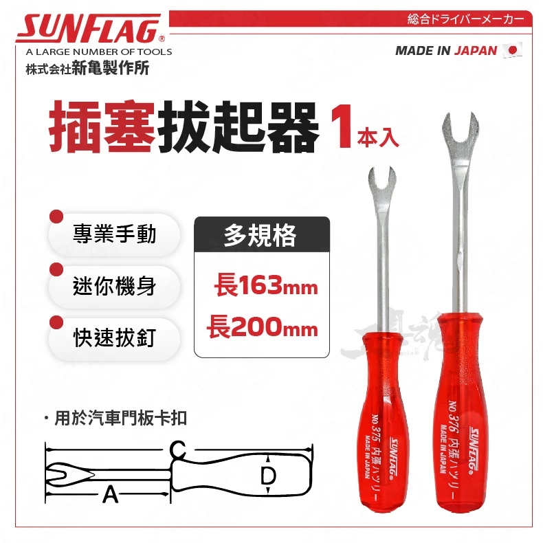 新龜/SUNFLAG- 插塞拔起器 膠柄釘拔 Y型門扣起子 膠柄釘拔 日本製 No.375 No.3