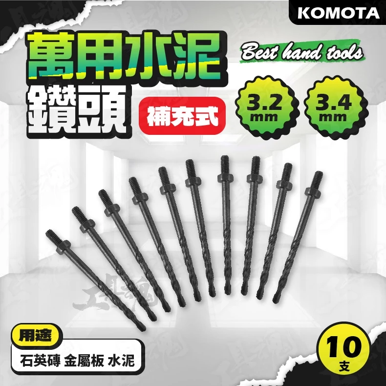 KOMOTA- 萬用水泥鑽頭 補充式 3.2mm 3.4mm 高張力螺絲用 10入 水泥用 水泥鑽頭