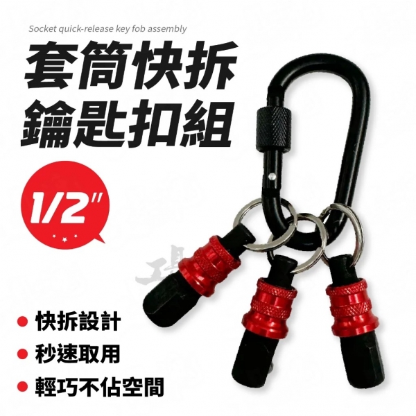 套筒快拆鑰匙扣組 1/2吋 快拆鑰匙 3顆組 鑽尾收納 快脫鑰匙圈 六角軸 工具配件