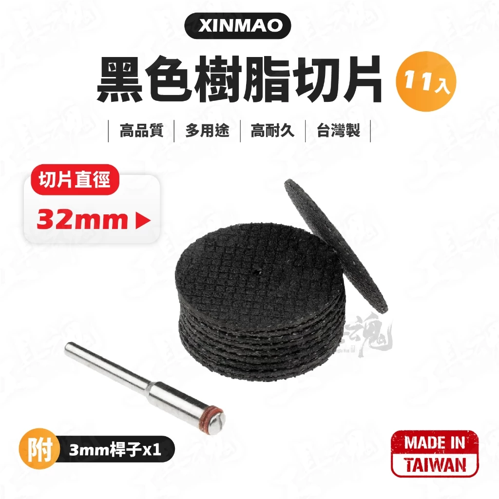 xinmao- 黑色樹脂切片32mm 台灣製 附3mm桿子 11入 樹脂切割片 迷你 電磨機配件 雙