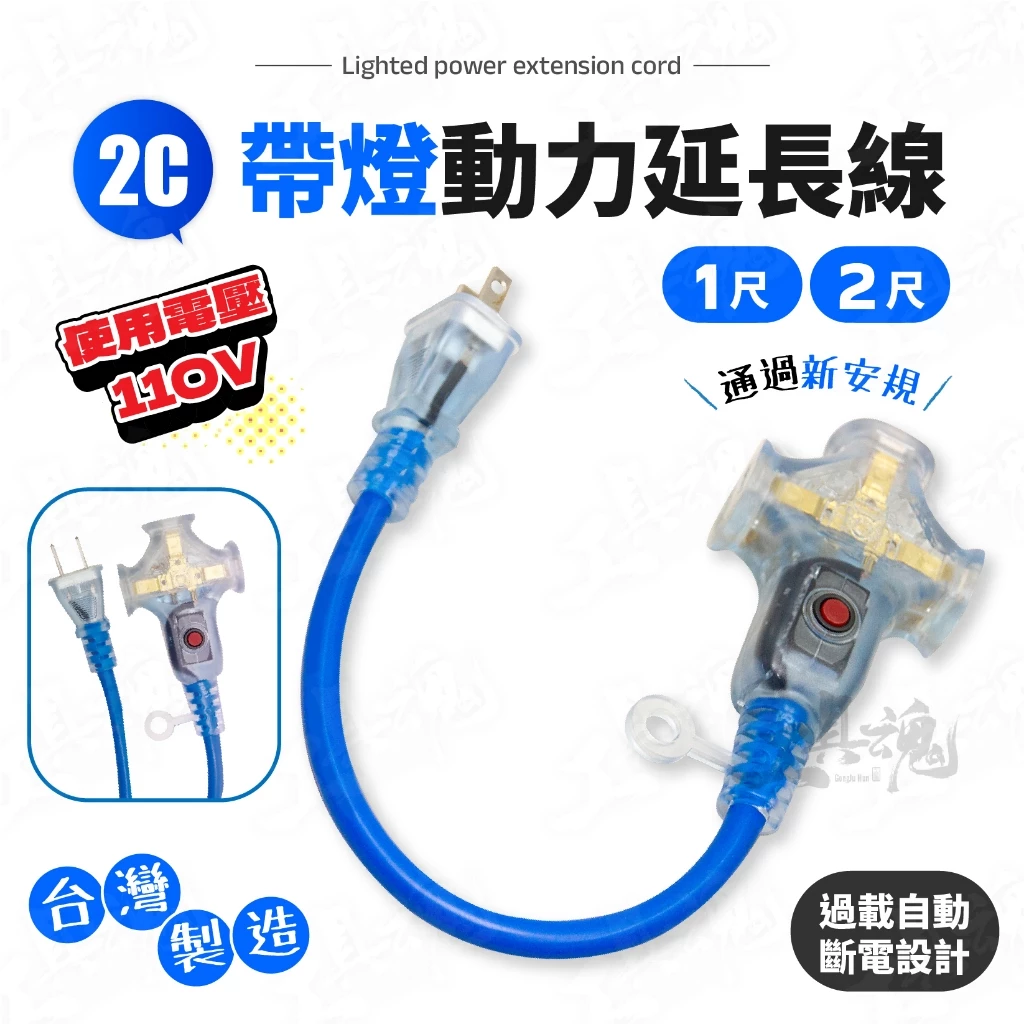 認證線 過載斷電 2.0 帶燈動力延長線 台灣製 1尺 2尺 戶外露營 新安規電源線 工業 動力線