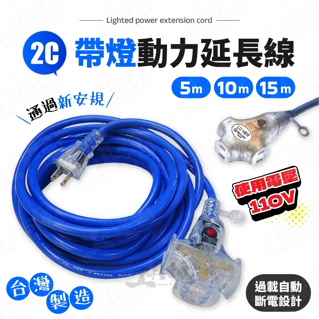 認證線 過載斷電 2.0 帶燈動力延長線 台灣製 5m 10m 15m 戶外露營 新安規電源線 工業