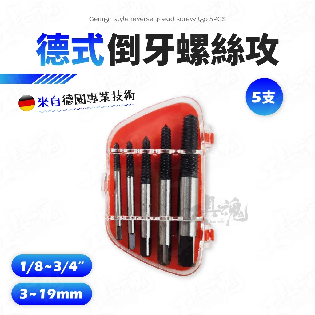 德式倒牙螺絲攻 5PCS 反牙螺絲退卸器 反牙絲攻 螺絲破壞器 退牙絲攻 退牙螺絲