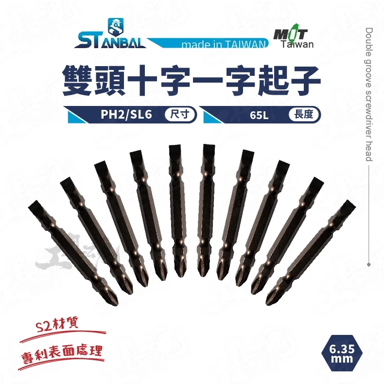 史丹堡- 雙頭起子十字一字 PH2/SL6x65L 台灣製 10入 S2材質 十字 雙頭 ST-80