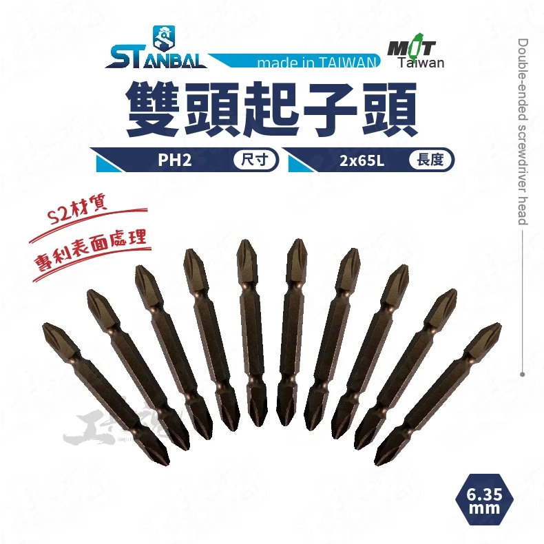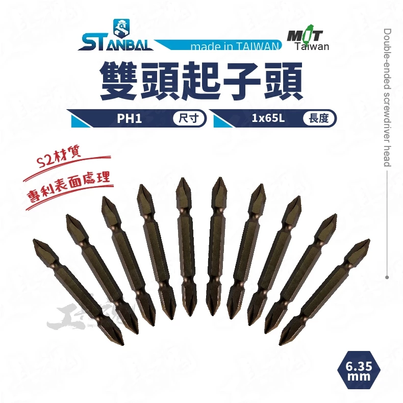 史丹堡- 雙頭起子頭 PH3x65L 台灣製 10入 S2材質 BIT批頭 雙頭 ST-8002 十