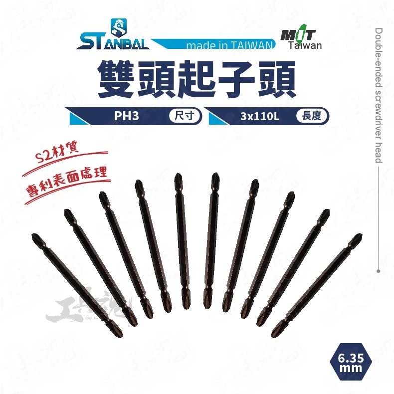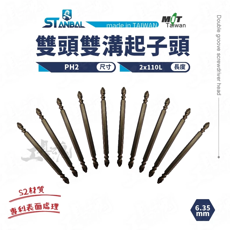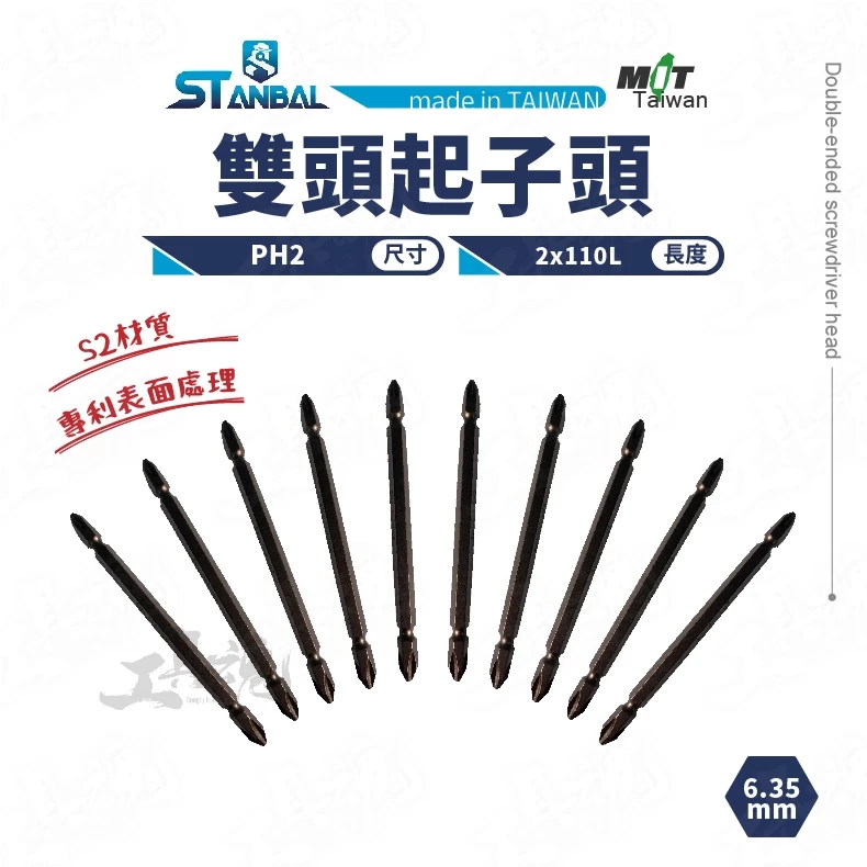 史丹堡- 雙頭起子頭 PH2x110L 台灣製 10入 S2材質 BIT批頭 雙頭 ST-8007-