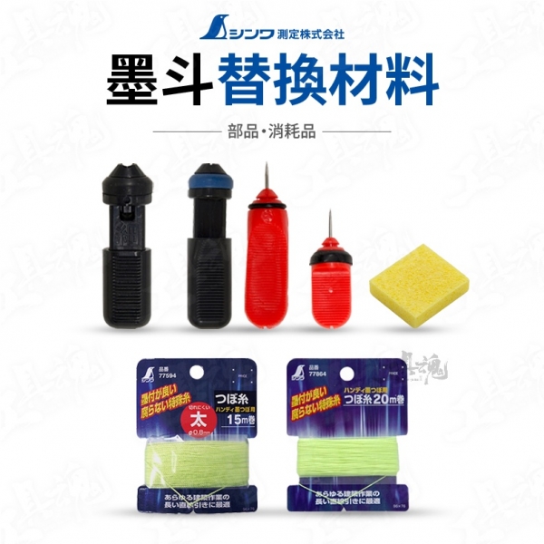 鶴龜/SHINWA- 日本 墨斗替換材料 耗材 墨斗線 墨斗針 海綿 替換品