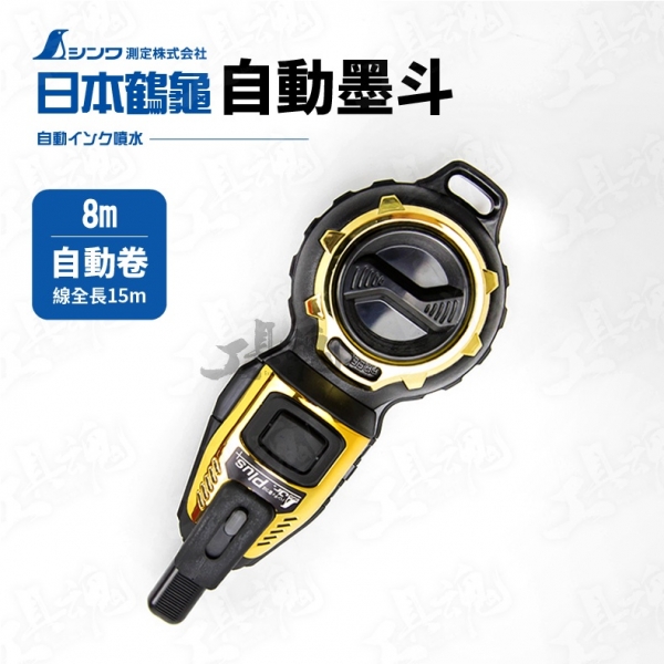 鶴龜/SHINWA- 日本 自動墨斗 墨斗 自動卷 8m 線全長 15m 自動收線 木工專用 裝修工