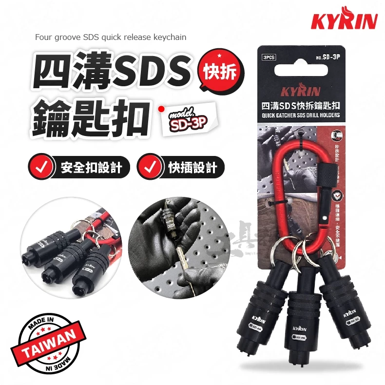 麒麟- SD-3P 四溝SDS快拆鑰匙扣 3顆組 KYRIN 鑰匙圈 鑽尾收納 快脫鑰匙圈 六角軸
