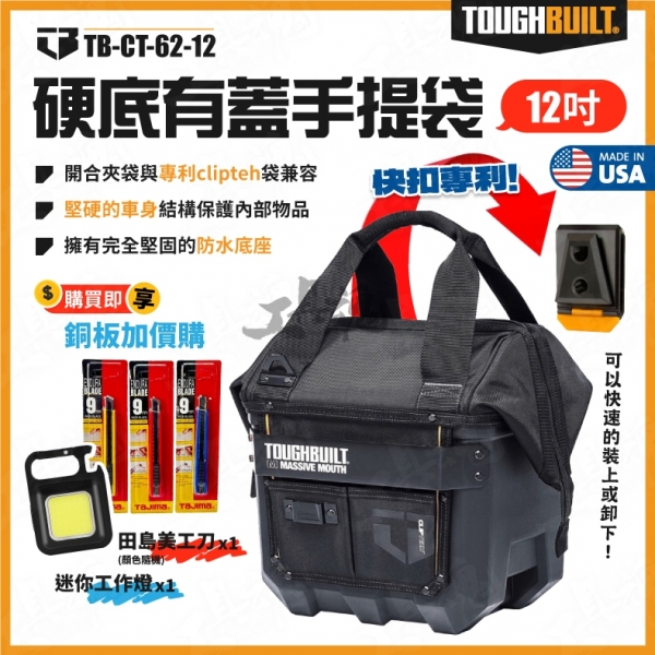 托比爾- 硬底有蓋手提袋 TB-CT-62-12 12吋 防水底殼 硬底工具包 大開口 M版 TB