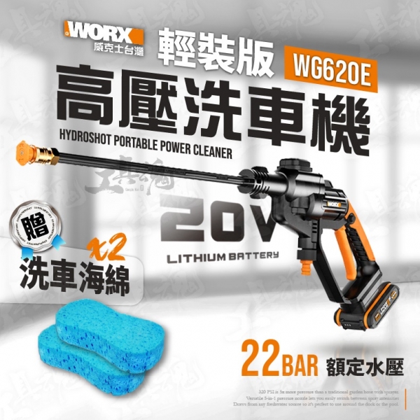 威克士- WG620E 高壓洗車機 輕裝版 家用版 輕巧版 洗車機 清洗機 20V WORX 威克士
