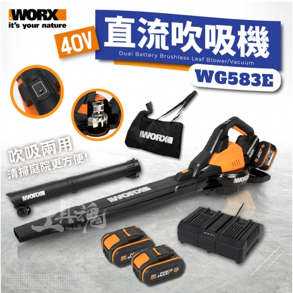 威克士- WG583E 吹吸兩用 吹葉機 吹風機 威克士 吹草機 無刷 40V 吹塵機 吸塵器 鼓風