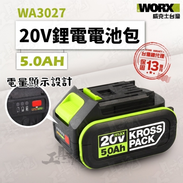 威克士- WA3027 5.0AH 電池包 20V 鋰電池 綠標 綠色 公司貨 WORX