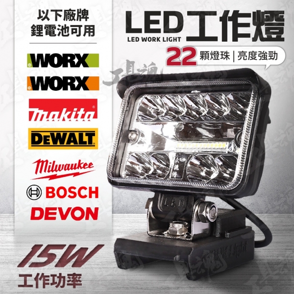 LED工作燈 照明燈 15W 威克士 牧田 得偉 美沃奇 博世 大有 大藝 LED 鋰電 WORX