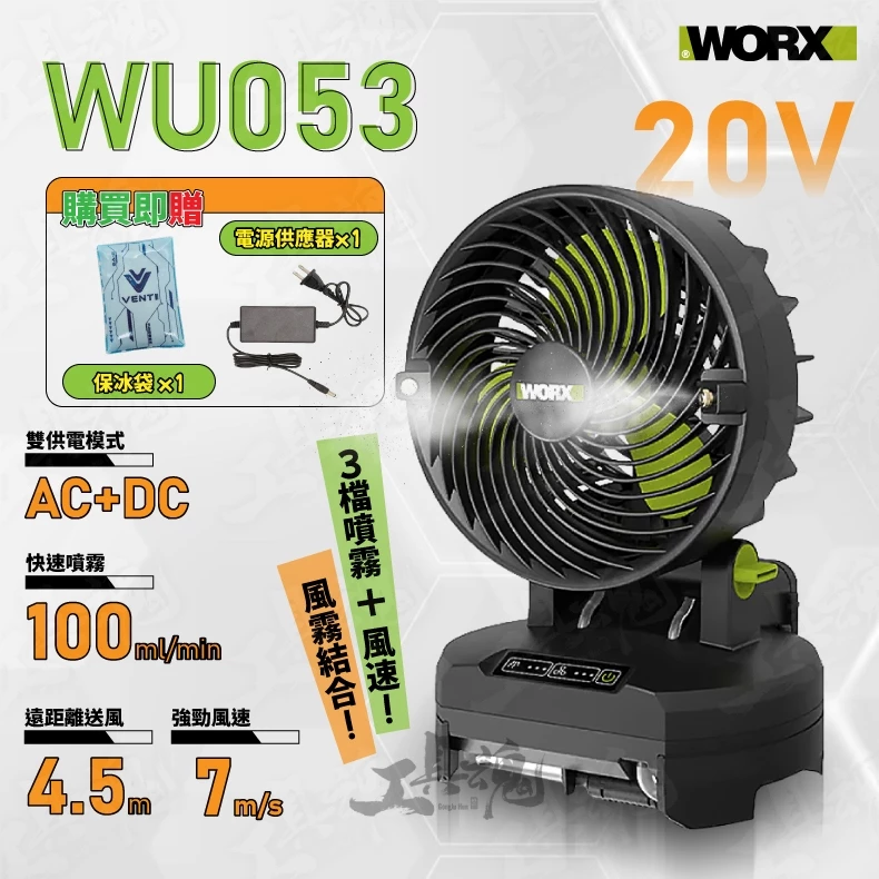 威克士- 鋰電風扇 風扇 WU053 8吋 可噴霧 4.5m 20V 露營 工廠 夏季必備 保冰袋