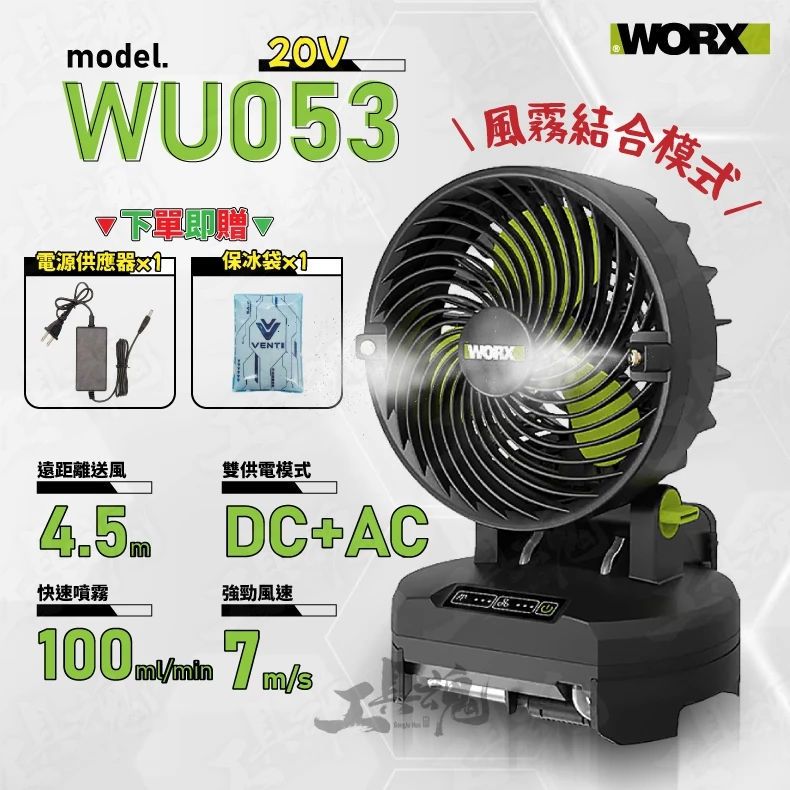 威克士- 鋰電風扇 風扇 WU053 8吋 噴霧 霧化 20V 涼風 三段調速 夏日剋星 WO