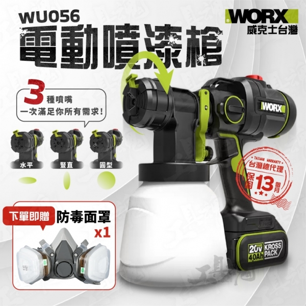 威克士- 【送防毒面罩】WU056 噴漆 無刷噴漆槍 電動噴漆槍 鋰電噴漆槍 18V 噴塗機 油漆