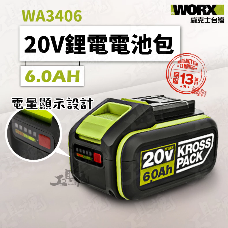 威克士- 6.0AH WA3406 電池包 20V 鋰電池 綠標 綠色 WORX