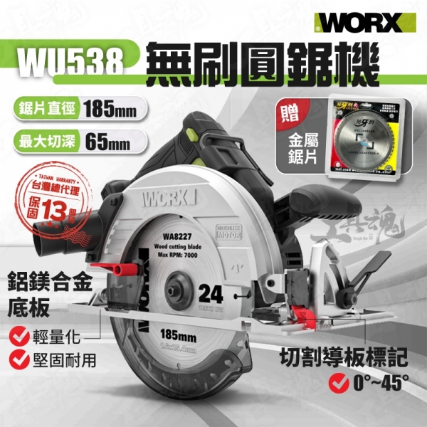 威克士- WU538 無刷圓鋸機 威克士 切斷機 圓鋸 切石機 切割機 電動圓鋸機 電圓鋸 worx