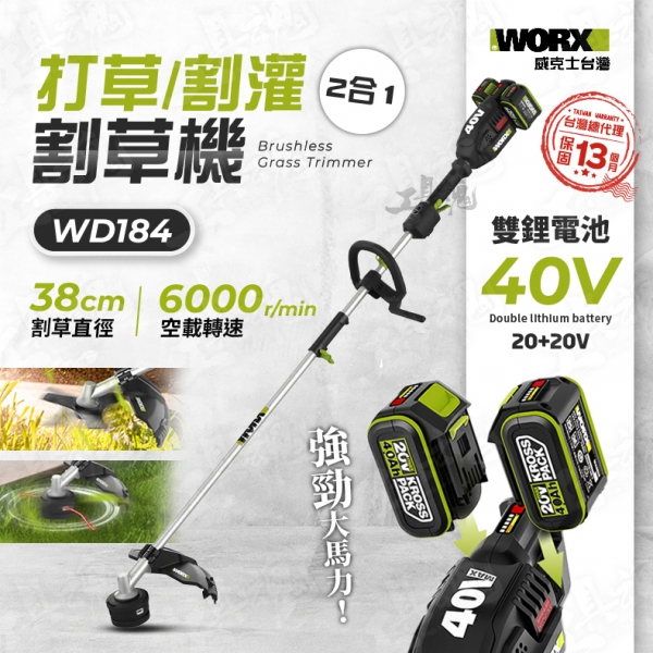 威克士- WD184 打草/割灌割草機 二合一 無刷鋰電 40V 20V 割草機 打草機 多功能 園