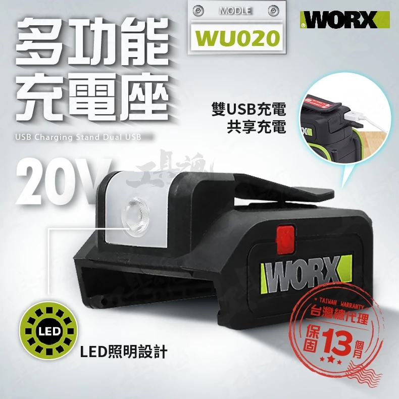 威克士- WU020 轉接座 隨身充電座 充電座 USB充電 迷你充電器 LED照明 20V 鋰電