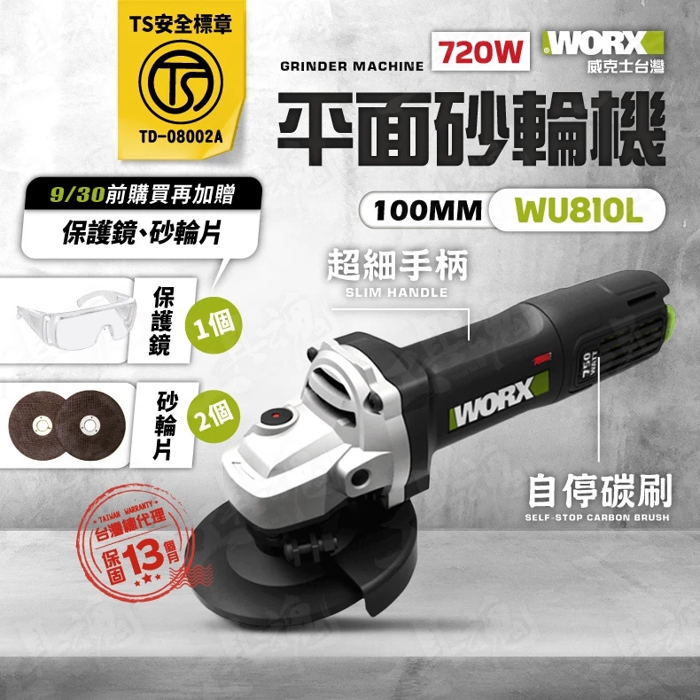 查看更多威克士- TS認證 WU810L 磨切機 砂輪機 角磨機 研磨機 100MM 750W 平面 手持