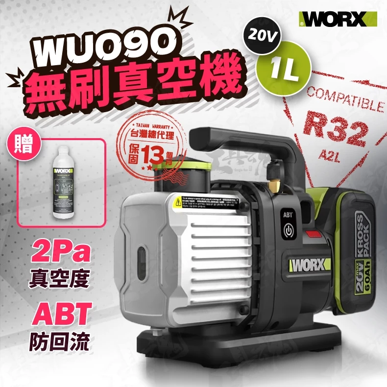 威克士- WU090 1L真空機 20V 無刷 ABT防逆流設計 抽真空機 冷氣安裝 抽真空 冷媒