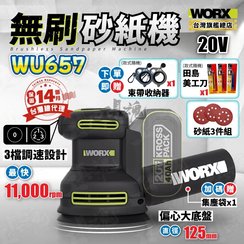 威克士- WU657 鋰電砂紙機 無刷 20V 圓砂機 打磨 木工研磨機 偏心打磨機 砂紙機 wor