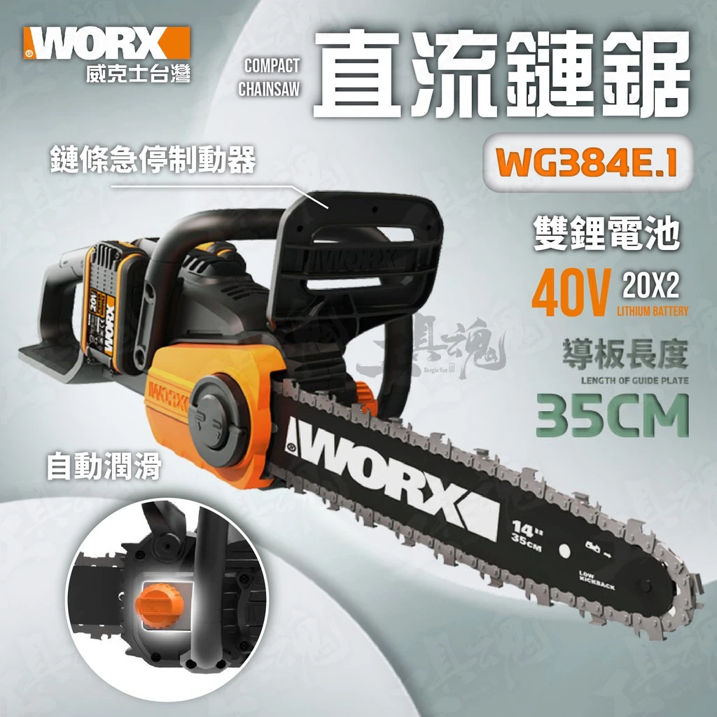 威克士- WG384E.1 雙電 35CM 鏈鋸 切割機 鍊鋸 20V 40V 無刷 無碳 公司